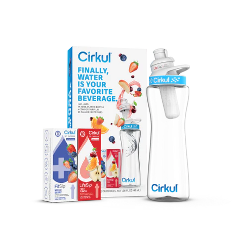 - 22oz. Plastic Bottle Starter Kit & Blue Comfort Grip Lid